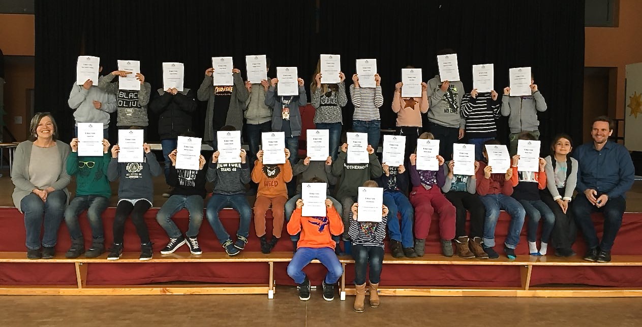 Bei der Siegerehrung und Verleihung der Urkunden in der Merkzweckhalle gab es von allen 3.- und 4. Klässlern für diese tolle Leistung einen donnernden Applaus.